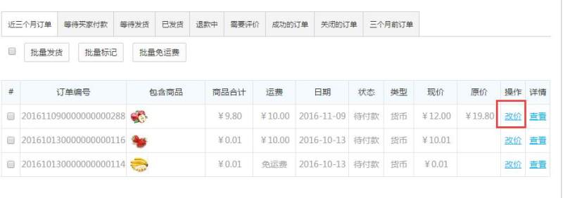商城的管理员可在“商城管理-交易管理-所有订单”里,为订单修改价格。