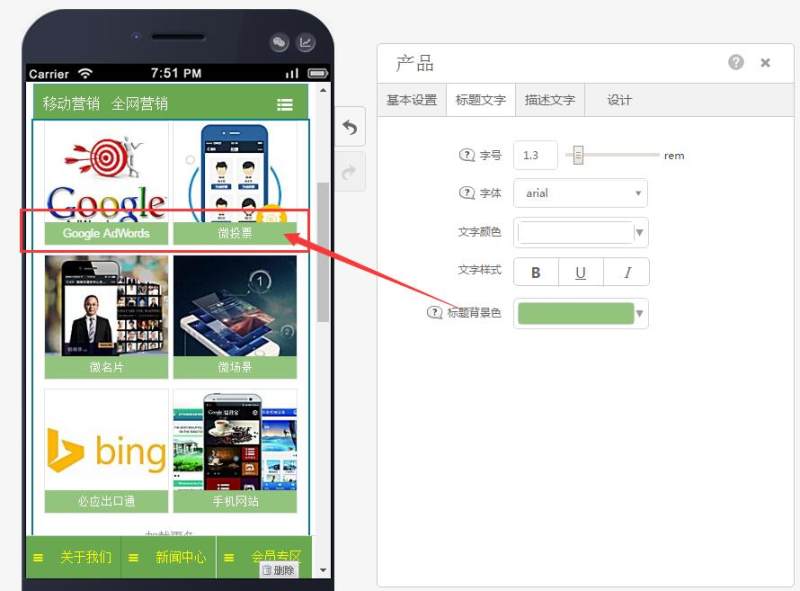 带背景样式的新闻产品标题(样式三、四),新增背景编辑功能。